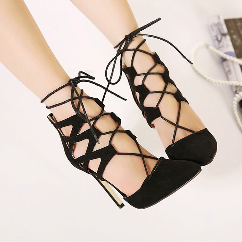 11 センチ ブラックフェイクスエードハイヒール 靴 夏 パンプス レディースハイヒール カジュアル グラディエーター レディース 靴 サンダル