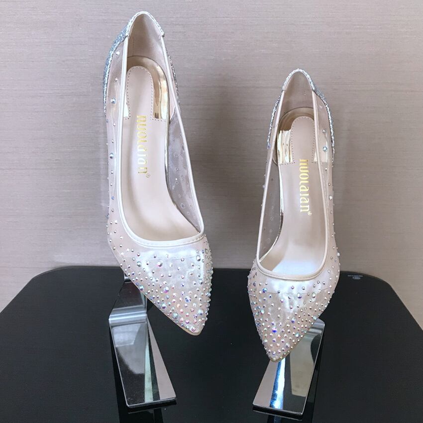 10 センチ ラインストーンウェディング シューズ レディース クリスタル ハイヒール尖った つま先 ハイヒール サンダル 靴 レディース パンプスレディースブランドデザインセクシー