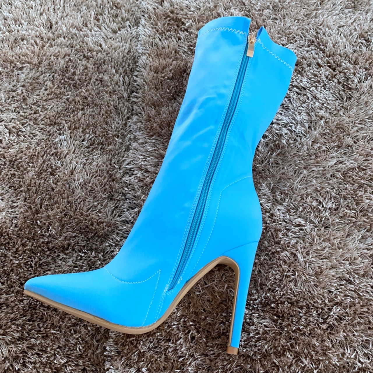 レディース スエードレザーアンクルブーツ 11cm ハイヒール 靴 冬 ブーツ レディース 靴 レディース Chaussure レディースストレッチブーツ ショートチューブ