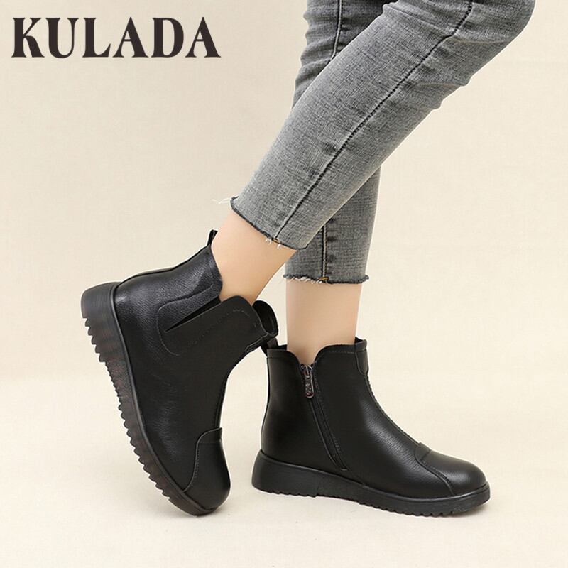 KUALDA ラウンドトウアンクルブーツ レディース カジュアルシューズ レディース Puレザー プラットフォーム レディース 靴 ぬいぐるみ