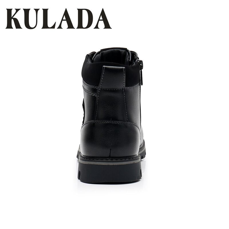 KULADA 男性 ブーツ スーパー 暖かい 黒 革 雪 ブーツ 男性 レース アップ 屋外 防水 スニーカー カジュアル 冬 靴 男性