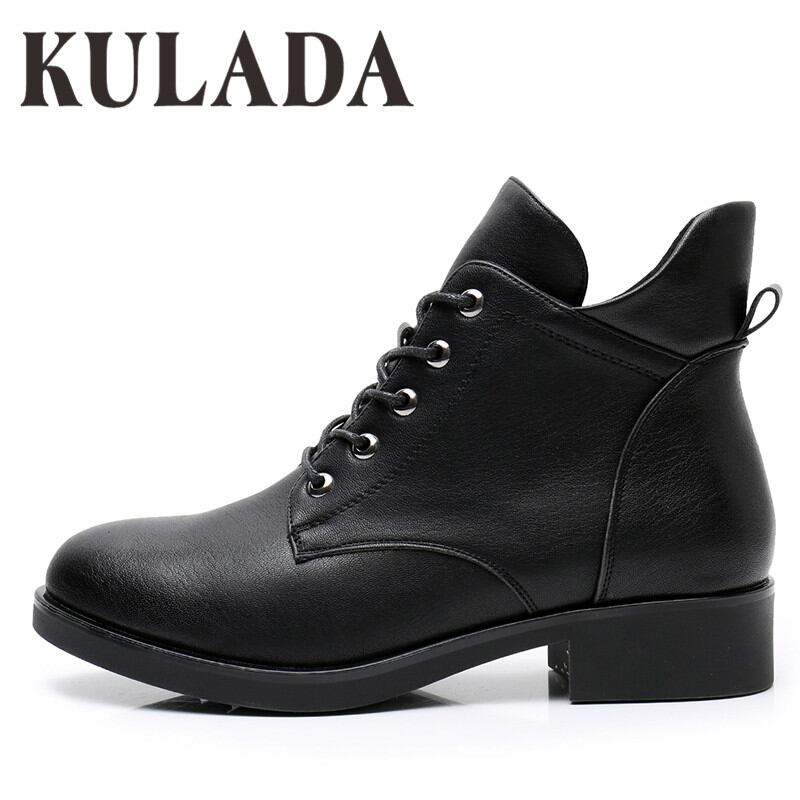 KULADA レトロ レース アップ 黒 アンクル ブーツ レディース 秋 ジッパー かかと レディース オートバイ ブーツ 防水