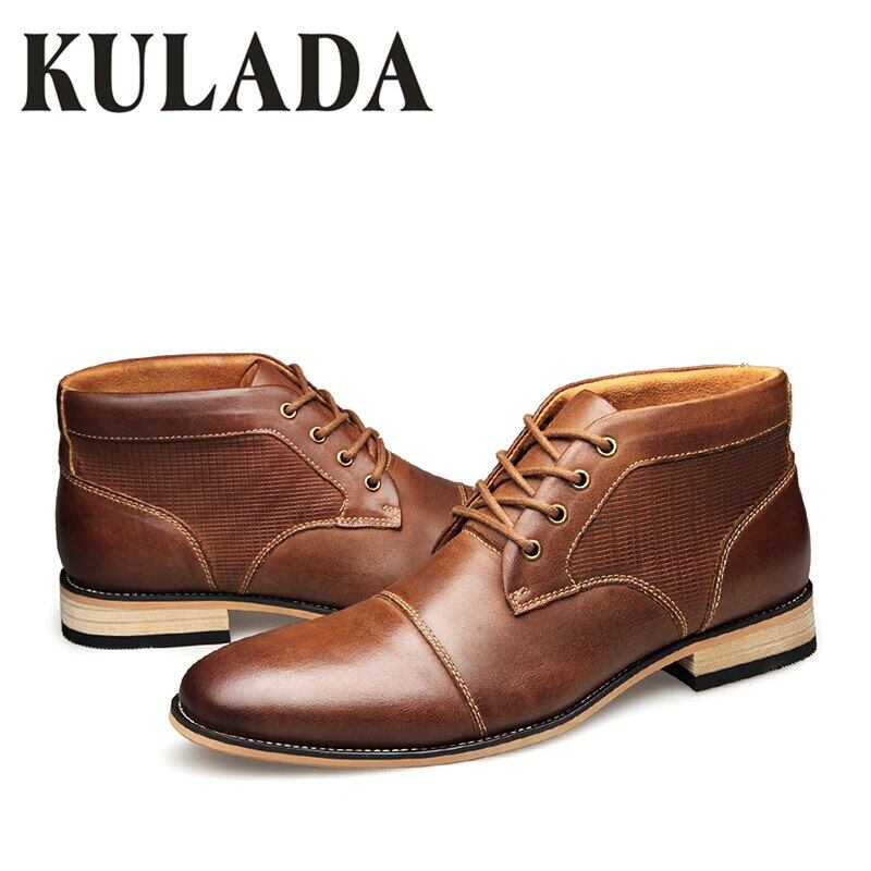 KULADA メンズ 本 革靴 ユーロ スタイル 男性 レースアップアンクルブーツ ビッグサイズ 40 50 男性 靴