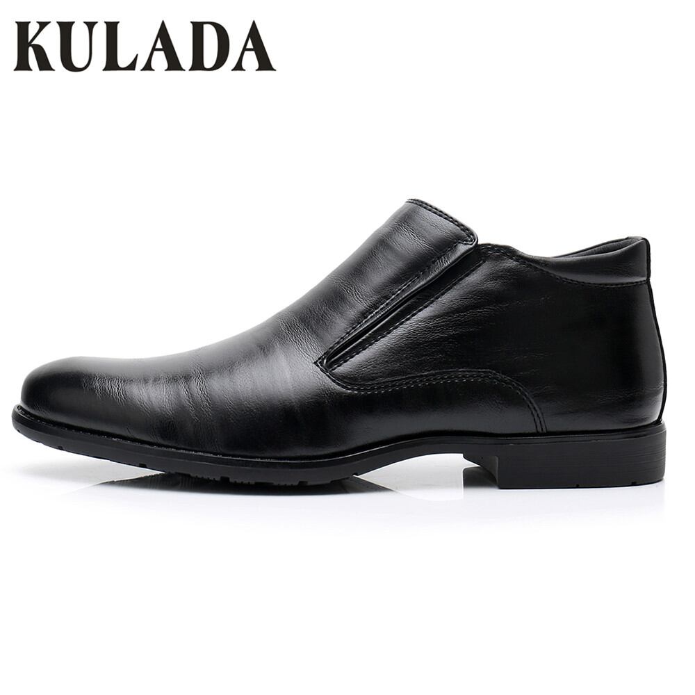KULADA 男性 靴 革 ビジネス ブーツ 春 秋 フォーマルドレス 黒 ブーツ 男性 ショート ぬいぐるみ クラシック ブーツ