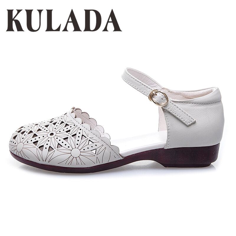KULADA レディース 本 革 サンダル ソフトレザーフラットサンダル ノンスリップ 快適 ローヒールラバーソール 靴
