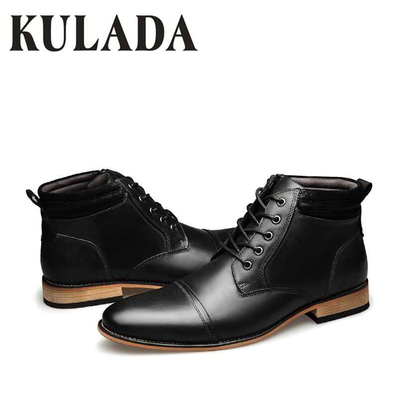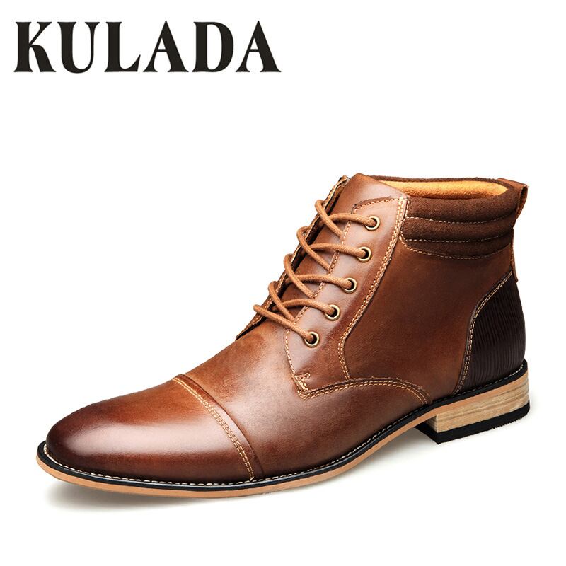 KULADA メンズ 本 革 シューズ 秋冬 男性 ブーツ ヴィンテージ スタイル カジュアル 男性 レースアップウォーム ぬいぐるみ ブーツ