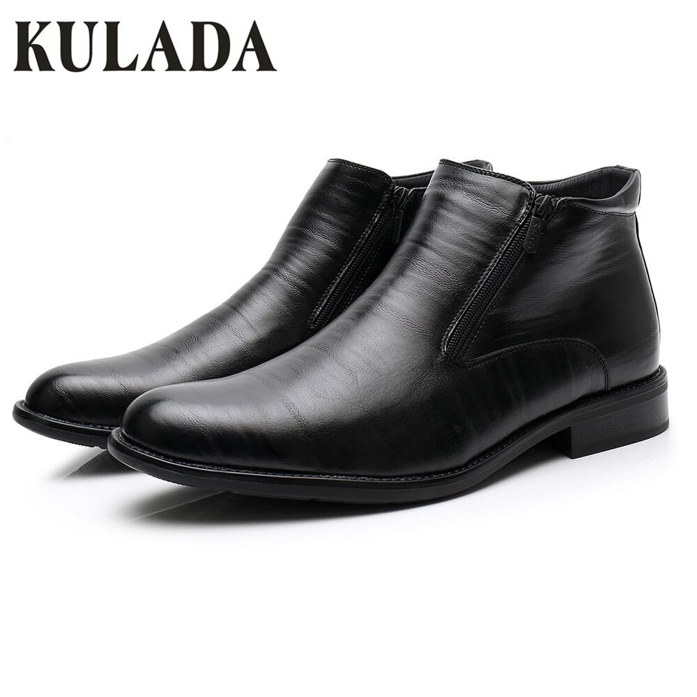 KULADA ブーツ メンズ 冬 靴 大型 スーパー 暖かい 靴 メンズフォーマルダブル ジッパーサイドブーツ 男性 雪 防水 ビジネス 環境