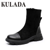 KULADA ブーツ レディース スエードブーツ レディース スエードフラットミッドカーフブーツ 春秋 レディース ブーツ 黒 靴