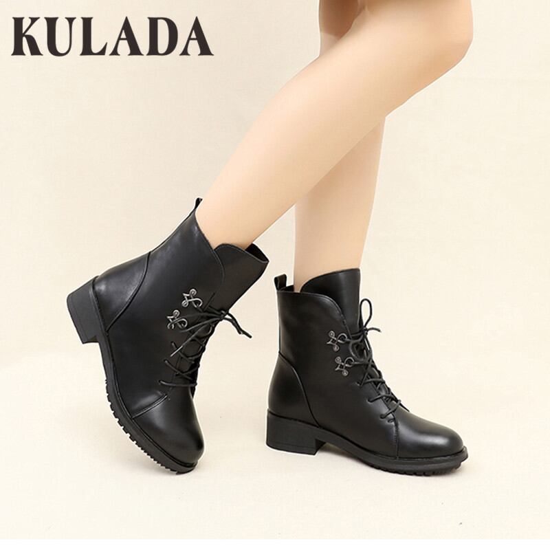 KULADA ブーツ ラウンド レディース レースアップブラックカラー レディース 毛皮 豪華な インソールクラシックスタイル レディース 靴