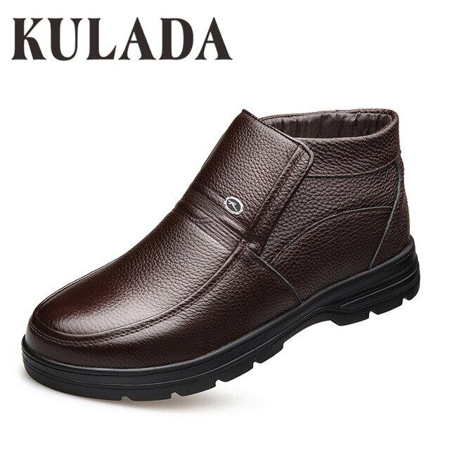 KULADA ブーツ 暖かい 本 革 冬 ブーツ メンズ 冬 靴 男性 軍事 毛皮 ブーツ 男性 防水 靴