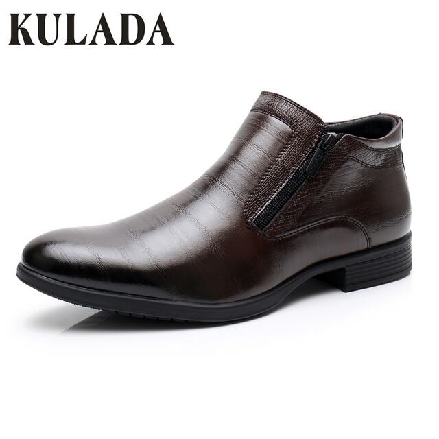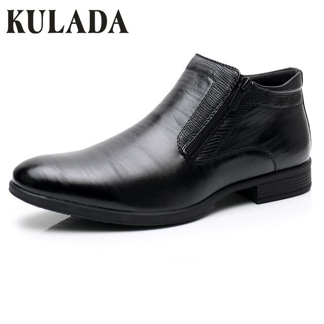 KULADA メンズ 靴 春 秋 革 アンクルブーツ メンズ ジッパーサイド 男性 ビジネス オックスフォード ブーツ 男性 ドレス レトロ 靴
