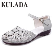 KULADA レディース 本 革 サンダル ソフトレザーフラットサンダル ノンスリップ 快適 ローヒールラバーソール 靴