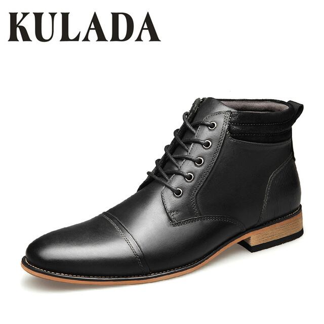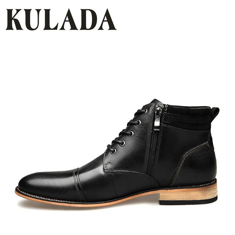 KULADA メンズ 本 革 シューズ 秋冬 男性 ブーツ ヴィンテージ スタイル カジュアル 男性 レースアップウォーム ぬいぐるみ ブーツ