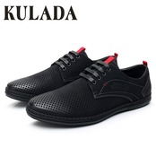 KULADA 男性 靴 夏 アウト レザー 駆動 ロー ファー 靴 通気性 ヘルプ 紳士 カジュアル サンダル
