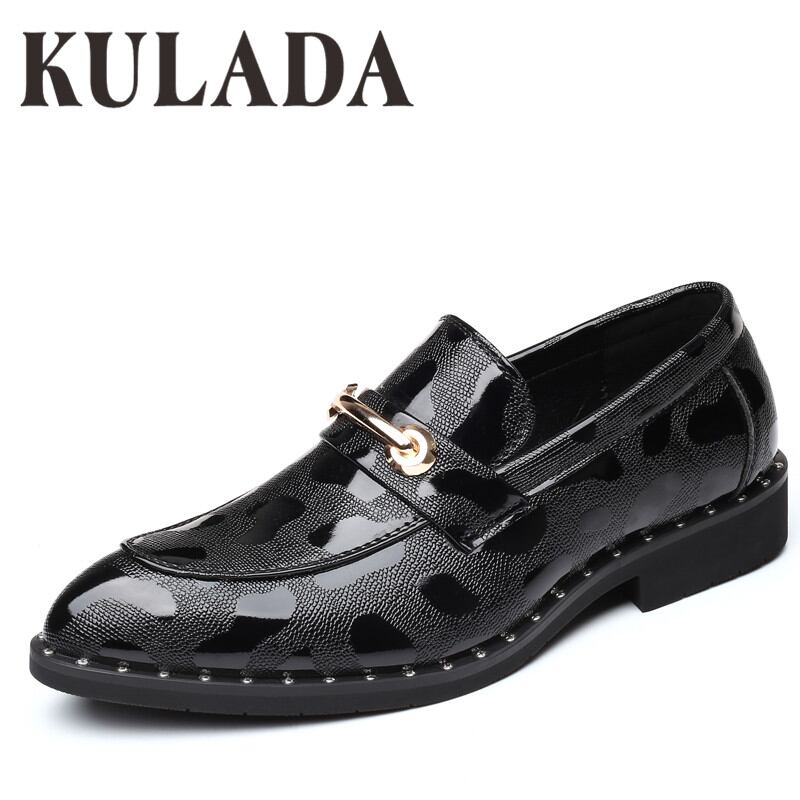 KULADA 男性 ビジネス レトロ パテント レザー 快適 靴 メンズ オックスフォード ブランド 正式な シューズ 男性 ドレス シューズ