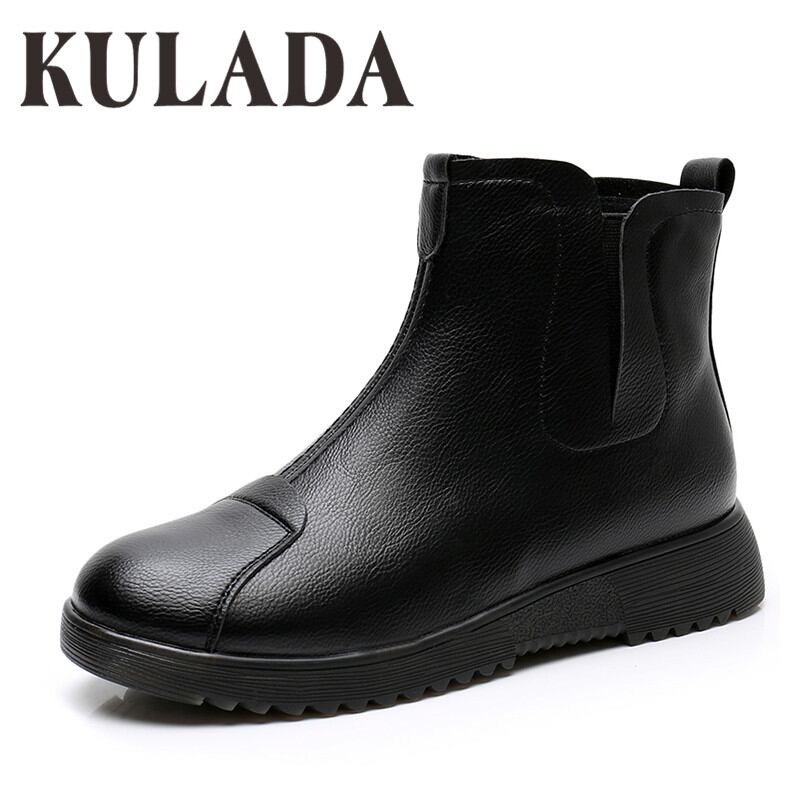 KUALDA ラウンドトウアンクルブーツ レディース カジュアルシューズ レディース Puレザー プラットフォーム レディース 靴 ぬいぐるみ
