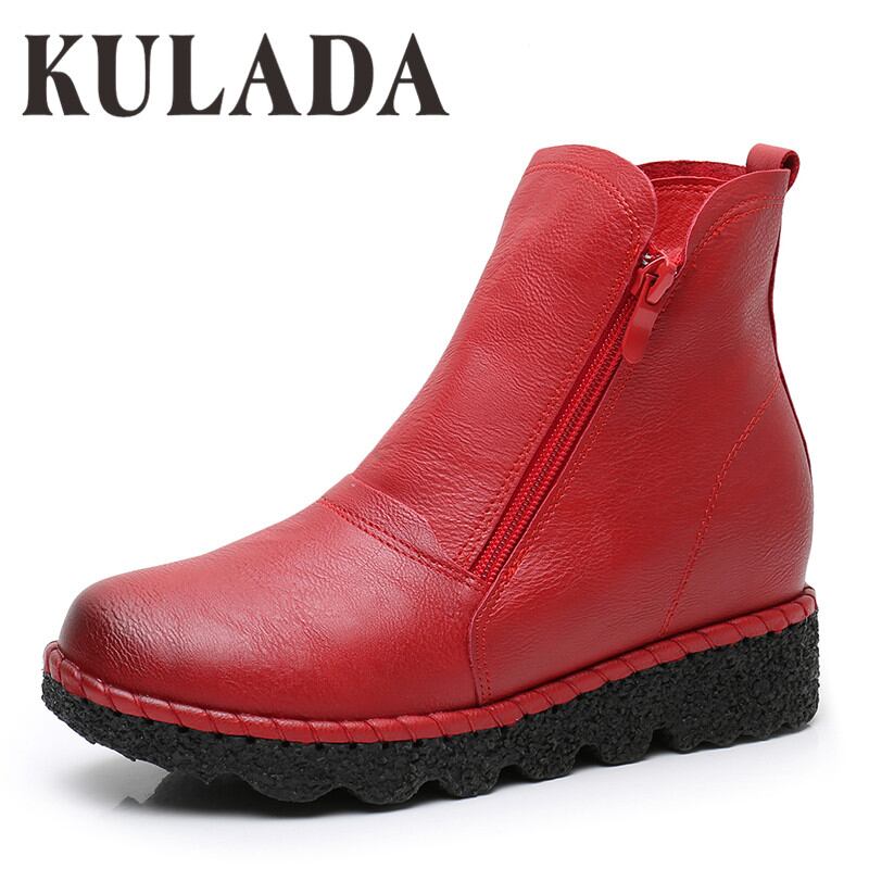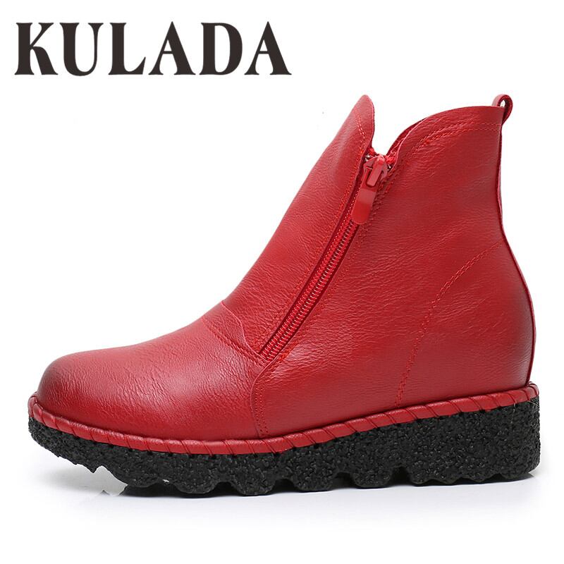 KULADA ブーツ レディース 靴 ダブルサイド ジッパーアンクルブーツ レディース 防水 プラットフォーム スタイル 春秋 レディース 靴