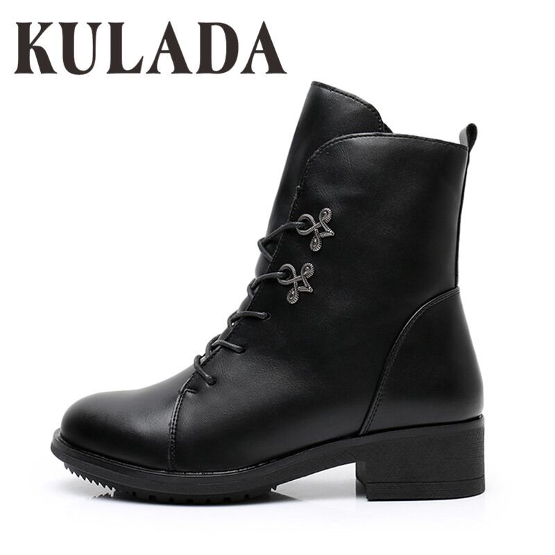 KULADA ブーツ ラウンド レディース レースアップブラックカラー レディース 毛皮 豪華な インソールクラシックスタイル レディース 靴