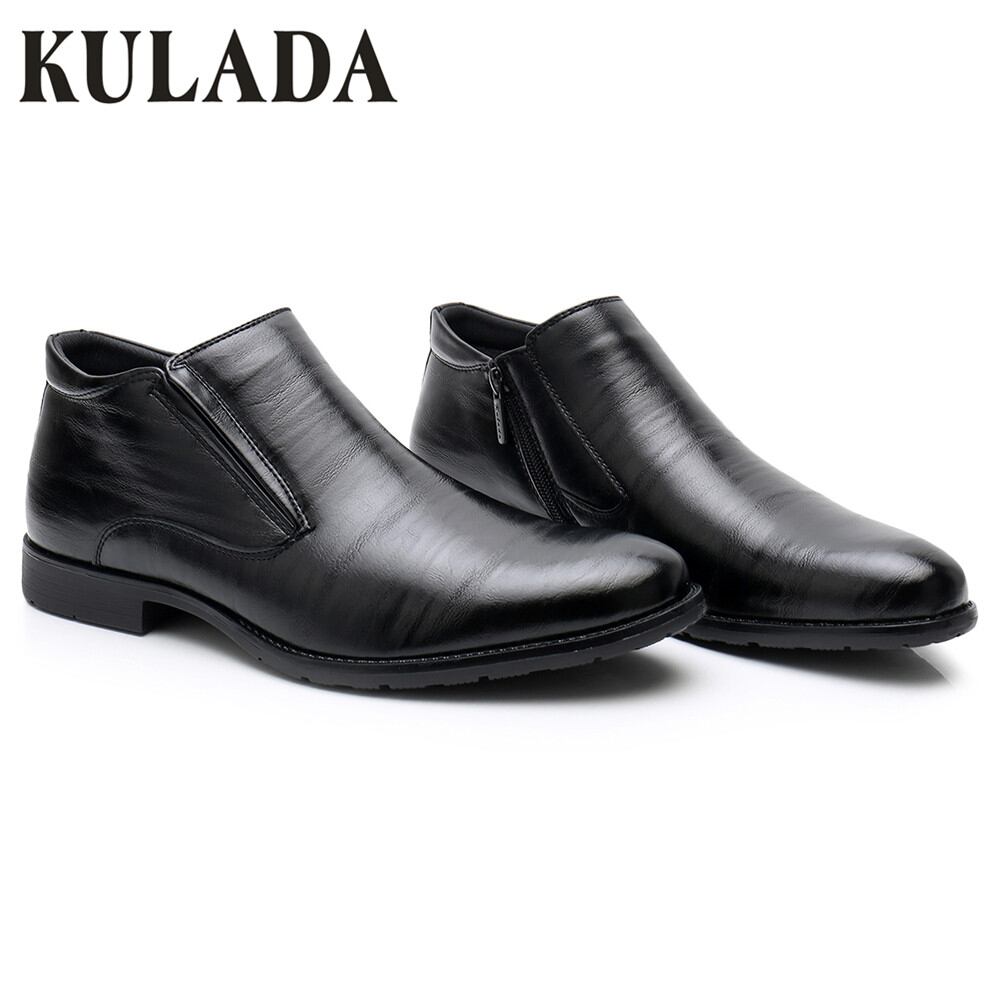 KULADA 男性 靴 革 ビジネス ブーツ 春 秋 フォーマルドレス 黒 ブーツ 男性 ショート ぬいぐるみ クラシック ブーツ