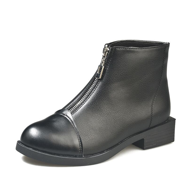 秋冬 ジッパー 防水 プラットフォームブーツ スクエアヒール 革 レディース ブーツ