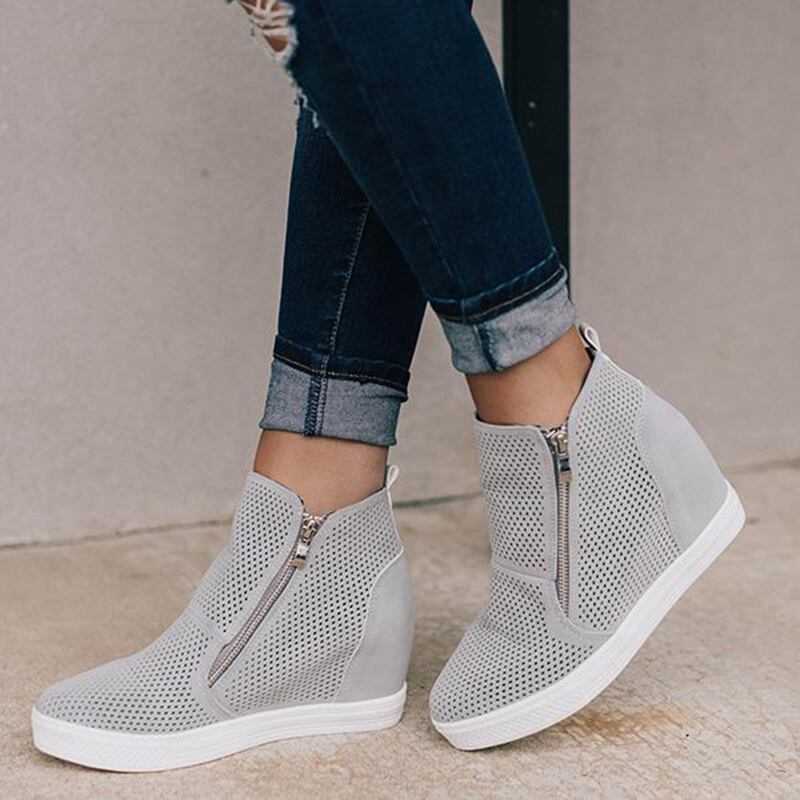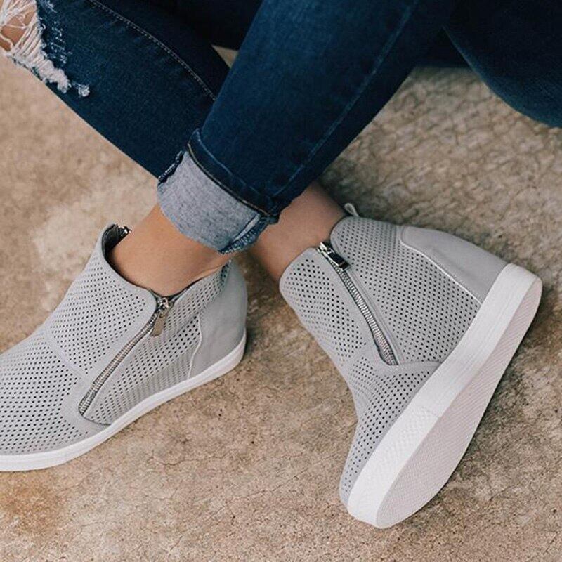 レディース 靴 カジュアル Breatha bleIncrea歌う レディース ジッパー スニーカー レジャープラットフォーム シューズ
