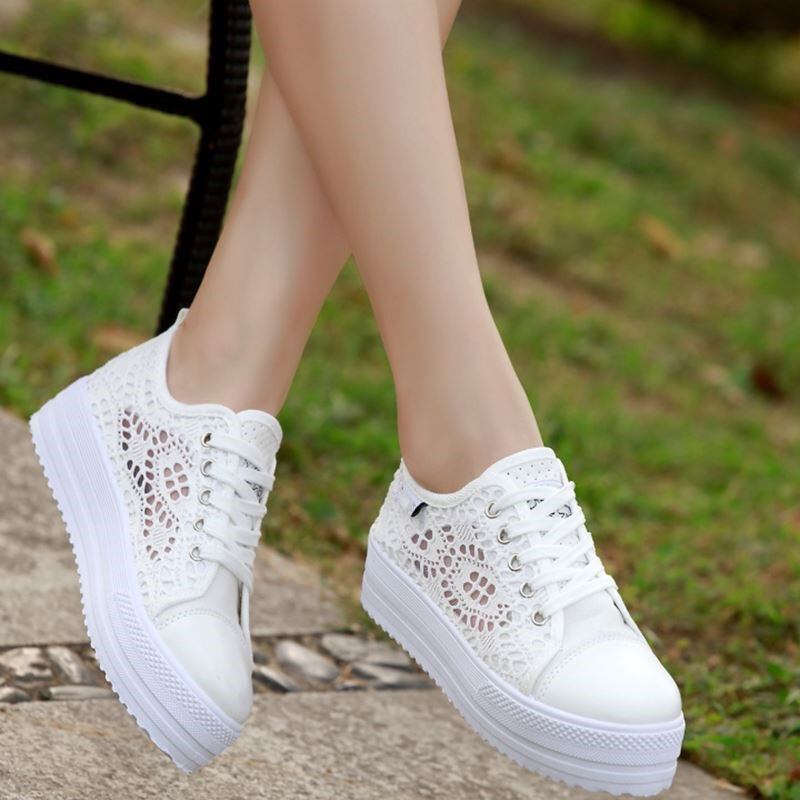 カジュアル カットアウトレース キャンバス シューズ 夏 レディース 靴 アウト 通気性 プラットフォームフラット シューズ 白黒